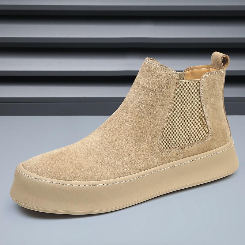 Мужские зимние кожаные полусапоги Мартин, бархатные теплые, на толстой подошве, увеличивающие рост, короткие сапоги, ретро хлопковые сапоги