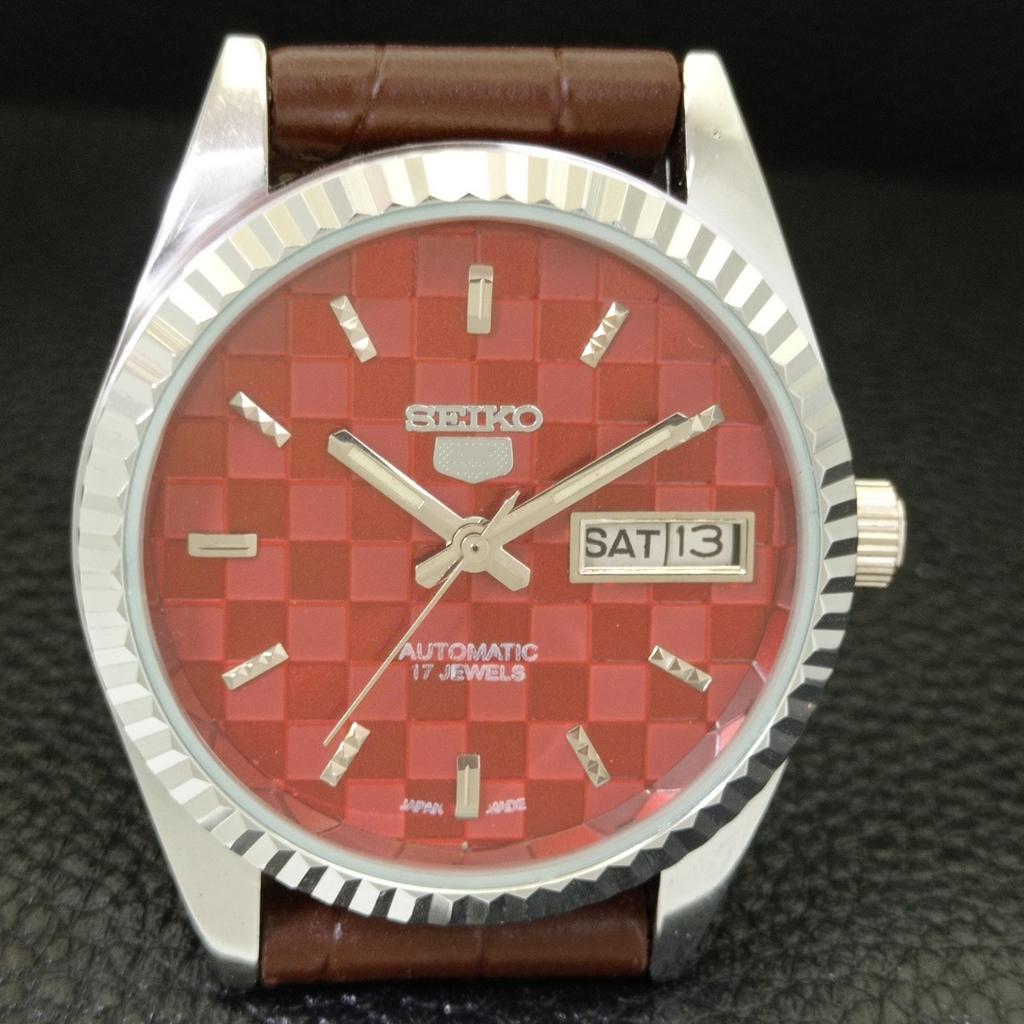 VINTAGE REFURBISHED SEIKO 5 AUTOMATIC JAPAN MENS RED COLOR DIAL WATCH a440389-4 Sk-a440389