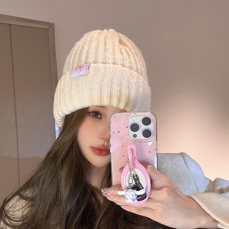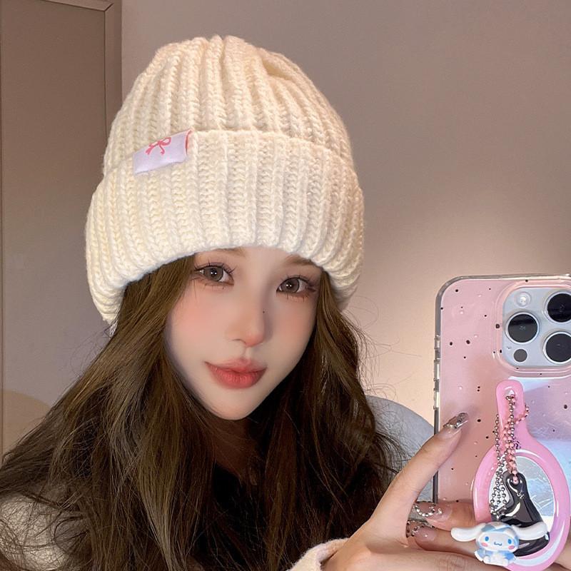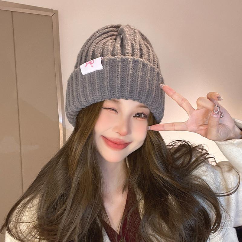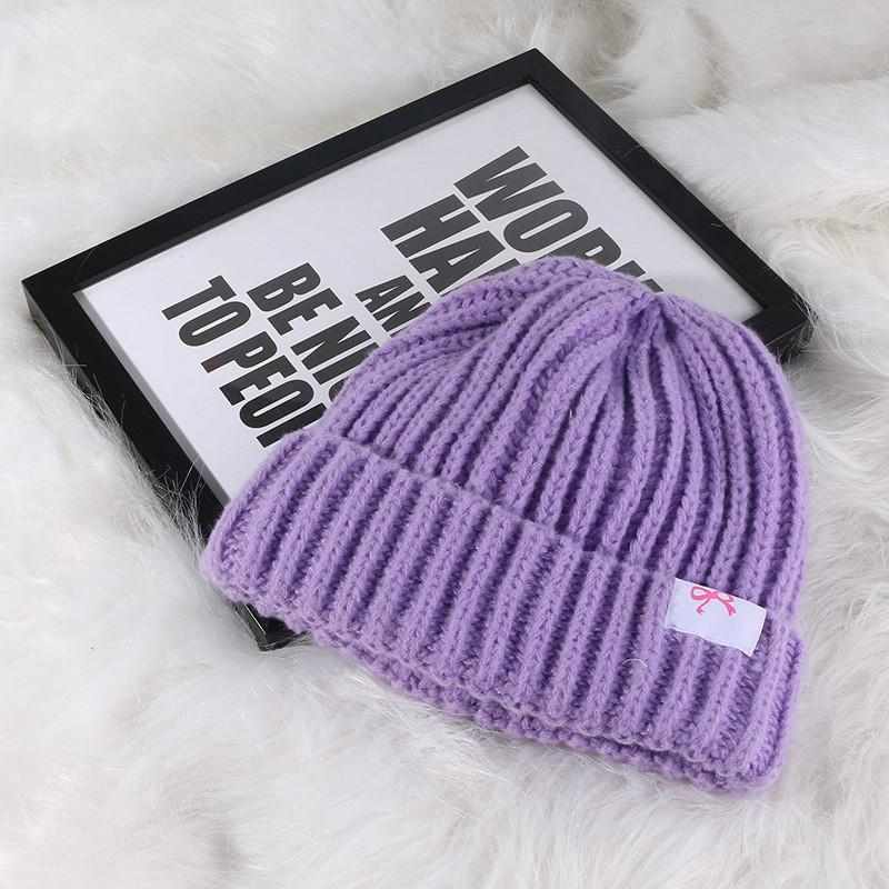 Удобная мягкая вязаная акриловая шапка для женщин с милым бантом, идеально подходящая для зимней и осенней моды.