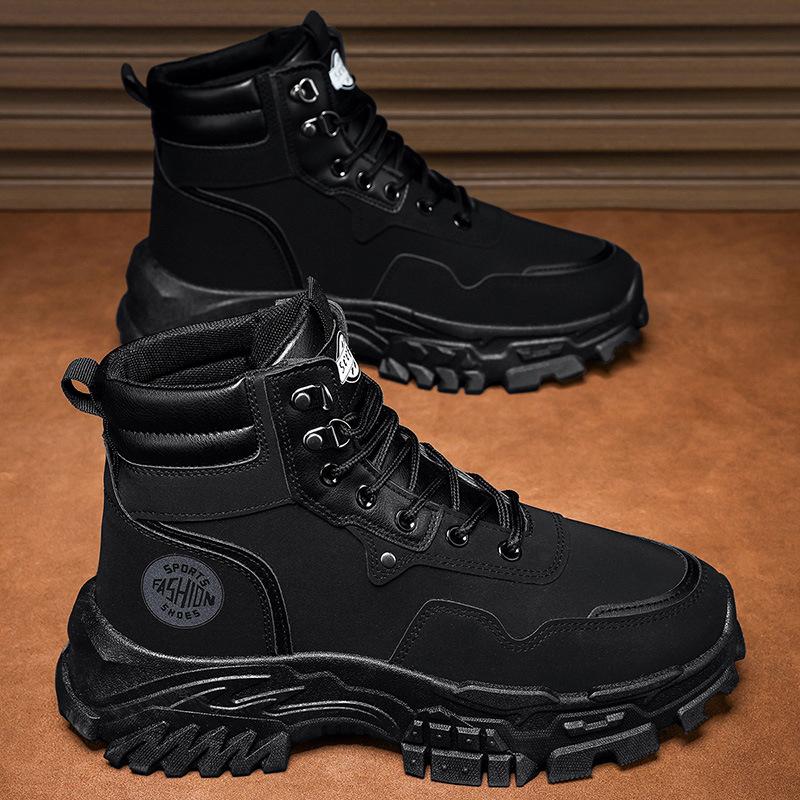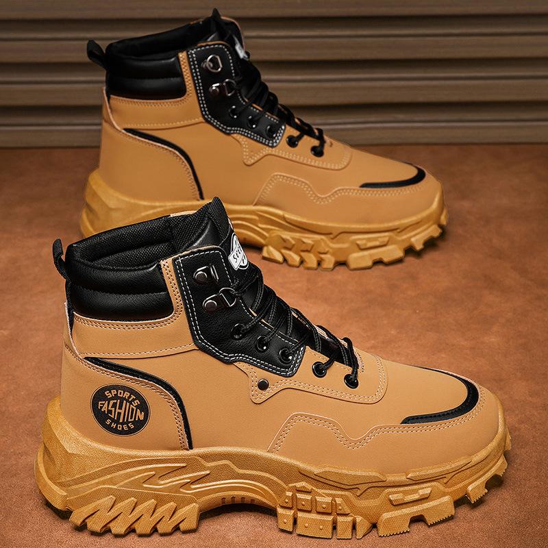 Мужская обувь осенняя нескользящая желтая уличная рабочая обувь с высоким берцем новая мужская спортивная обувь Мартин черные кожаные ботинки