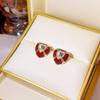 Серьги-пусеты с подвесками в виде капель из жемчуга и красных сердец: Французские ретро винтажные каффы для осени и зимы.