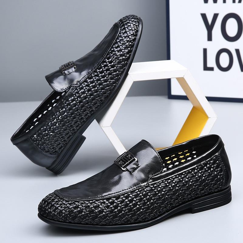 Мужская обувь в стиле легкой роскоши, летняя новинка, плетеные вручную, полые, дышащие, повседневные кожаные туфли, мужские слипоны