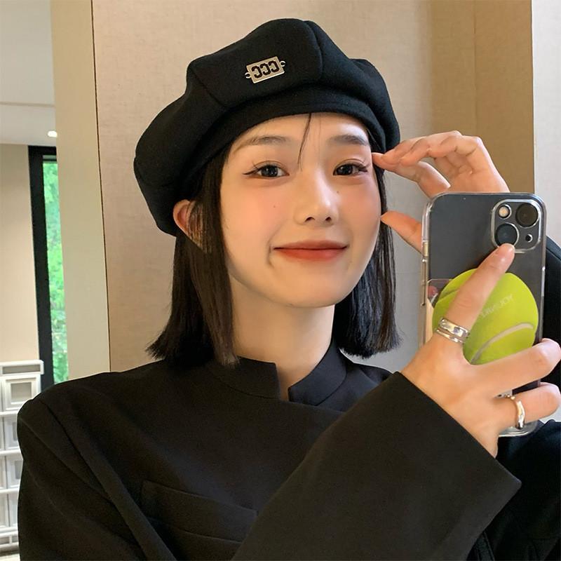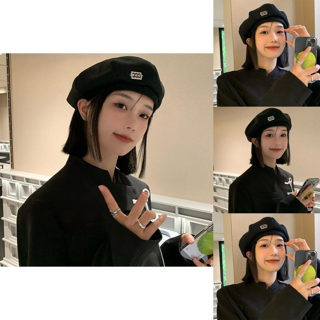Модный берет черный для женщин большого размера головы, дизайн для лица, стройнящий