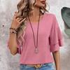 Женская летняя двухслойная футболка с коротким рукавом, V-образным вырезом, однотонная — купить товар онлайн с бесплатной доставкой по всему миру!