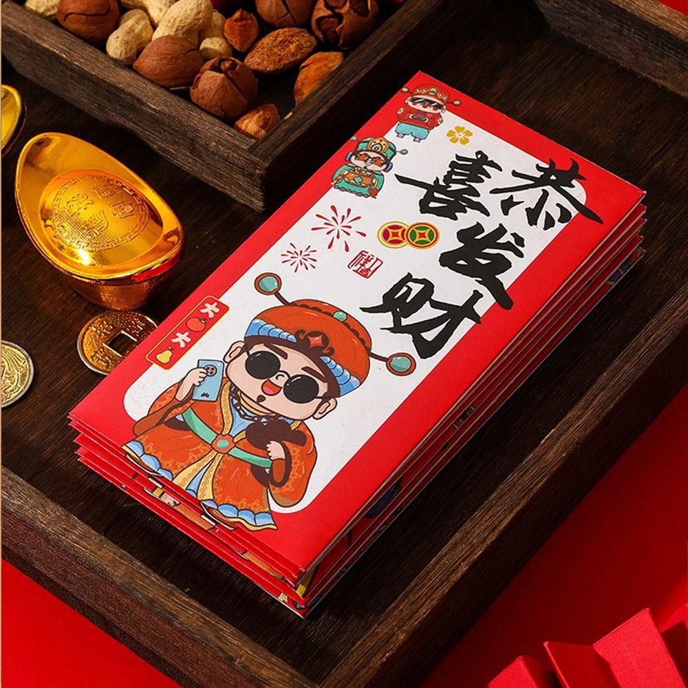 6pcs Traditional God of Wealth Money Pocket Hongbao Gifts Packing Bags Celebration Party