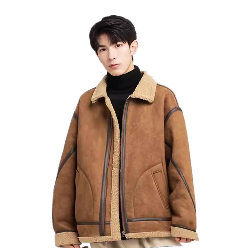 Мужское пальто, осенне-зимняя очень толстая мужская куртка из замши и флиса. Теплая и модная куртка на молнии с утолщенной подкладкой.