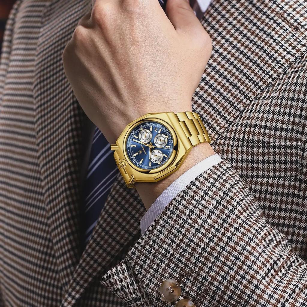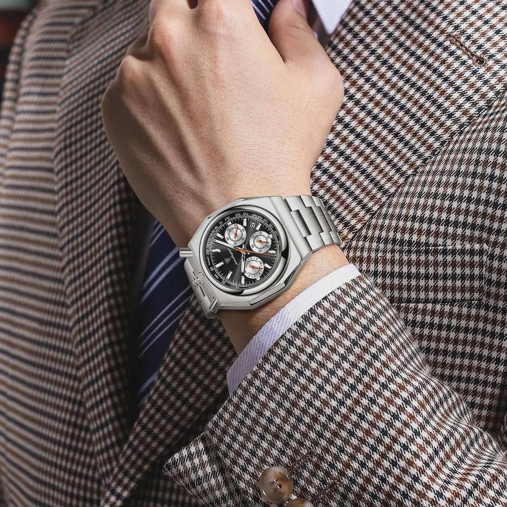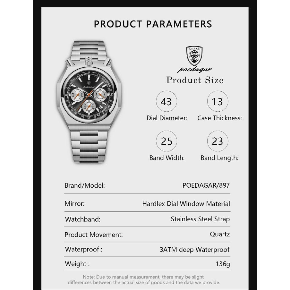 POEDAGAR Роскошные мужские часы Водонепроницаемые из нержавеющей стали Светящиеся Мужские часы Дата Хронограф Кварцевые Мужские наручные часы
