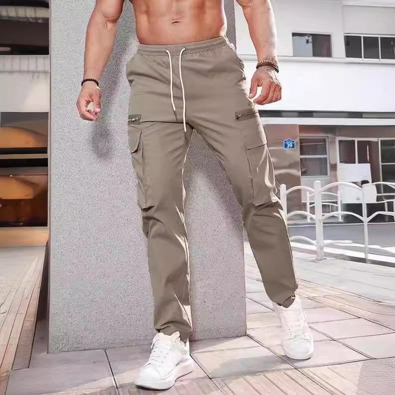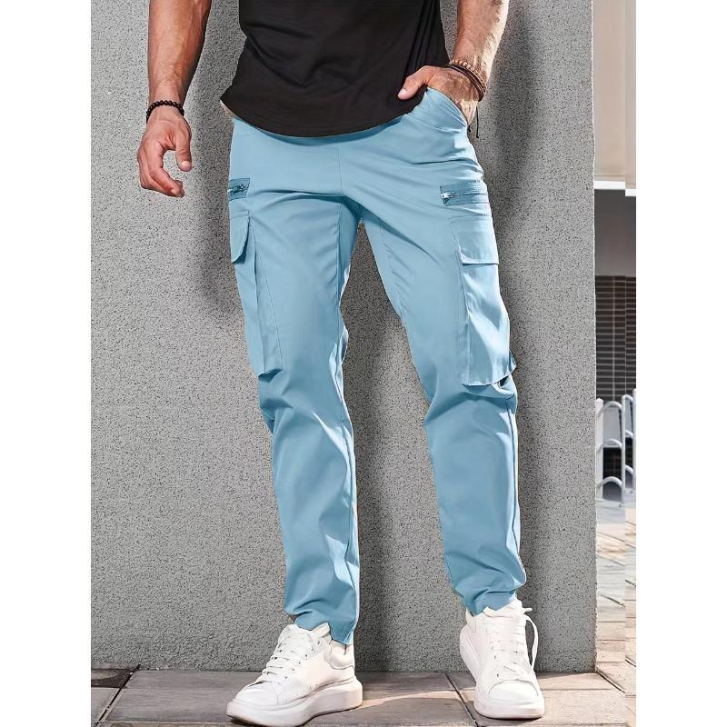 Мужские брюки с боковыми карманами, шаровары на молнии, черные повседневные мужские брюки в стиле хип-хоп, модные повседневные уличные брюки