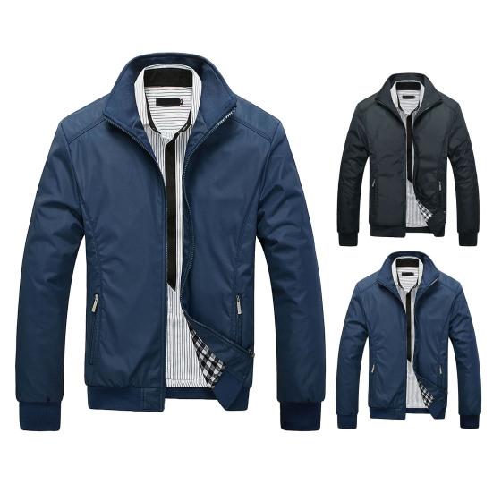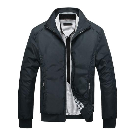 Наша мужская куртка с воротником-стойкой, однотонным цветом и длинными рукавами отличается простотой и непринуждённостью.