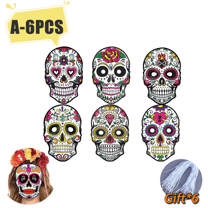 6-60 шт. Хэллоуин Красочные маски черепа Мексиканский День мертвых Набор бумажных масок для вечеринки, маскарада, тематического декора, для самостоятельного изготовления