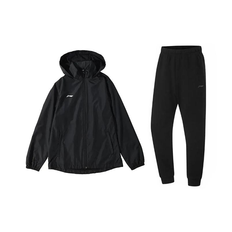 Логотип бренда Li Ning Свободный ветрозащитный костюм Удобные простые длинные брюки Повседневный спортивный костюм Костюм унисекс Черный YFDV197-1+AKLUA73-4