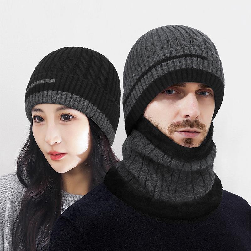 Зимняя толстая вязаная шапка с цветовой блокировкой, защищающая от холода, набор из двух предметов для мужчин и женщин, теплая шерстяная шапка с защитой ушей — купить товар онлайн с бесплатной доставкой по всему миру!