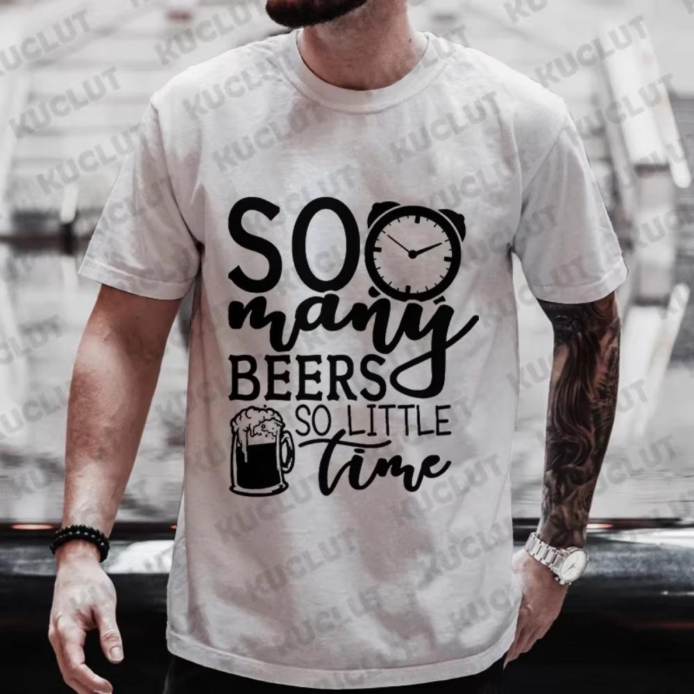 Мужская футболка с надписью «Так много пива, так мало времени» с забавной графикой «Y2k» Топы для вечеринок с друзьями Футболки для вечеринок с выпивкой Плюс Размер Сочетающаяся одежда Уличная одежда