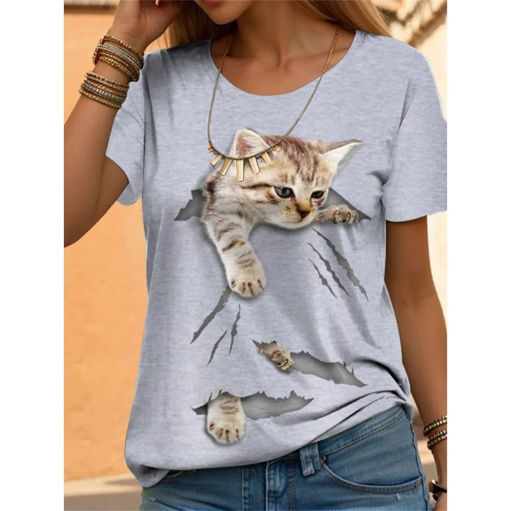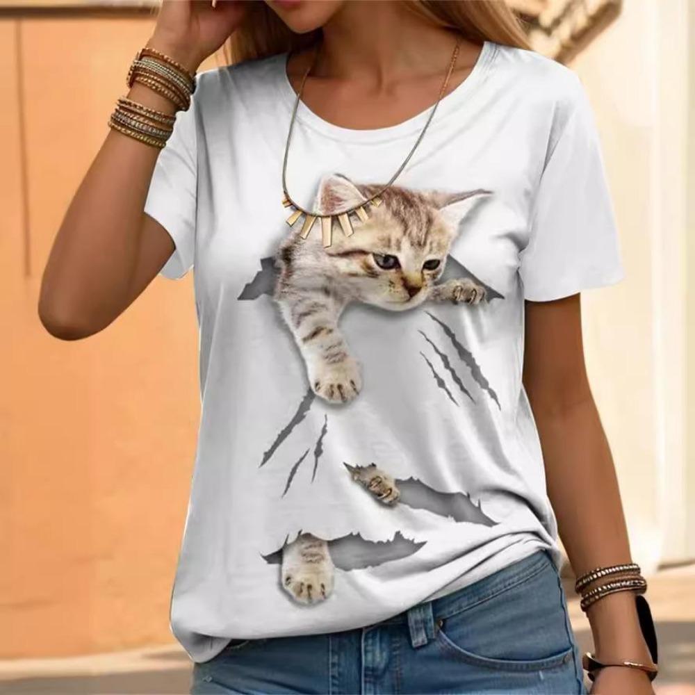 Женский топ с коротким рукавом в европейском и американском стиле с кошкой