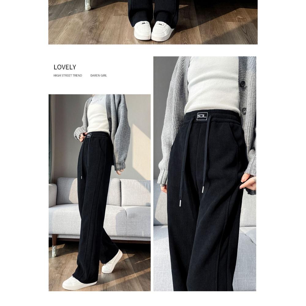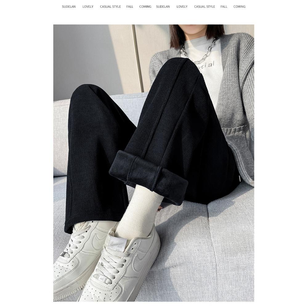 Очень толстые утепленные широкие брюки женские, осень и зима повседневные свободные высокие прямые брюки