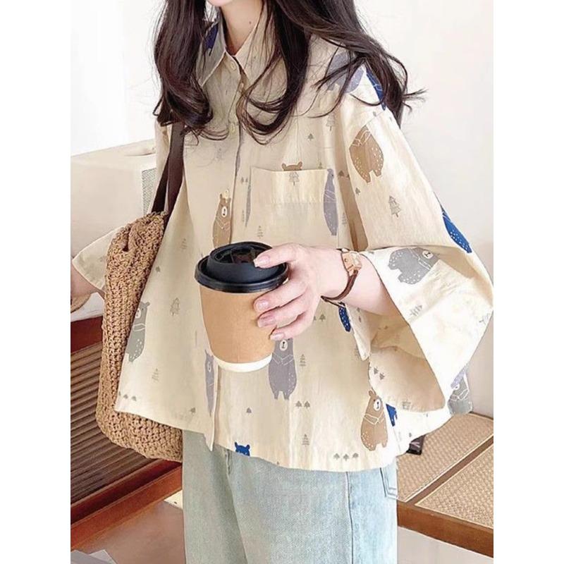 Женская летняя повседневная рубашка с коротким рукавом и воротником, свободного кроя, оригинального стиля, короткий мультяшный маленький топ, тренд — купить товар онлайн с бесплатной доставкой по всему миру!