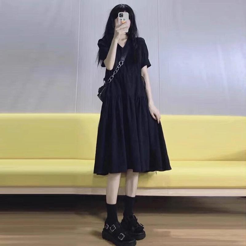 Юбка для беременных Летнее платье платье до колена Модный темперамент Свободное высококлассное черное платье