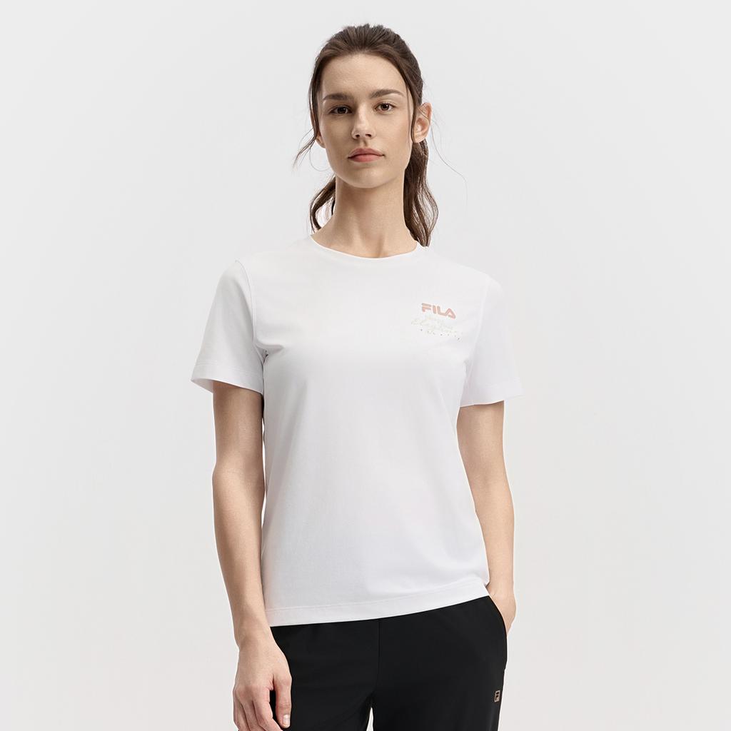 Fila Серия Фитнес Пуловер с круглым вырезом Удобная футболка с коротким рукавом Женские топы Нефритово-белый A11W531102F-WT