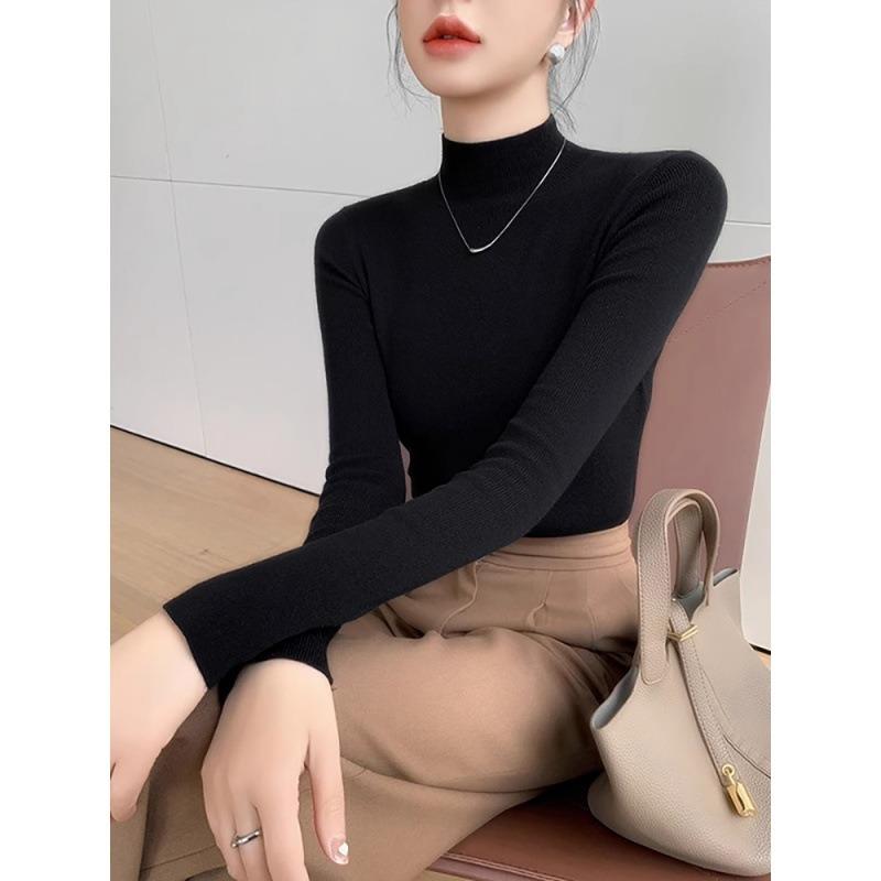 Осенне-зимний черный темпераментный трикотажный свитер с полувысоким воротником, женский новый свитер с длинными рукавами для ношения под низ
