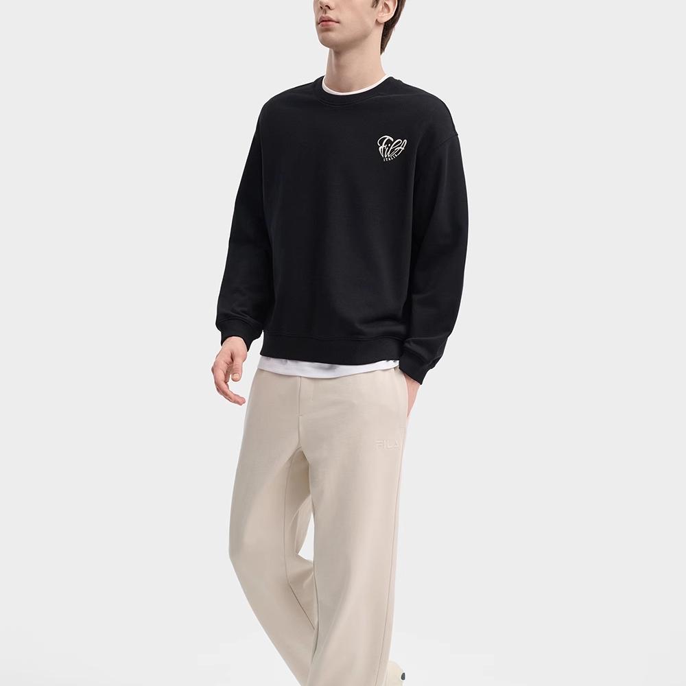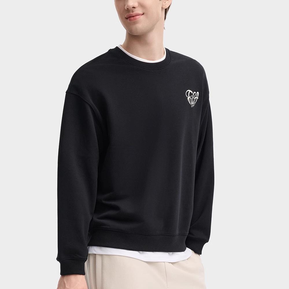Fila Свитшот мужской черный с принтом сердца, круглым вырезом, свободного кроя, с длинным рукавом F11U439202F-BK