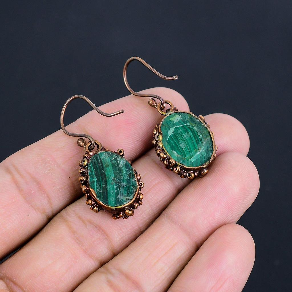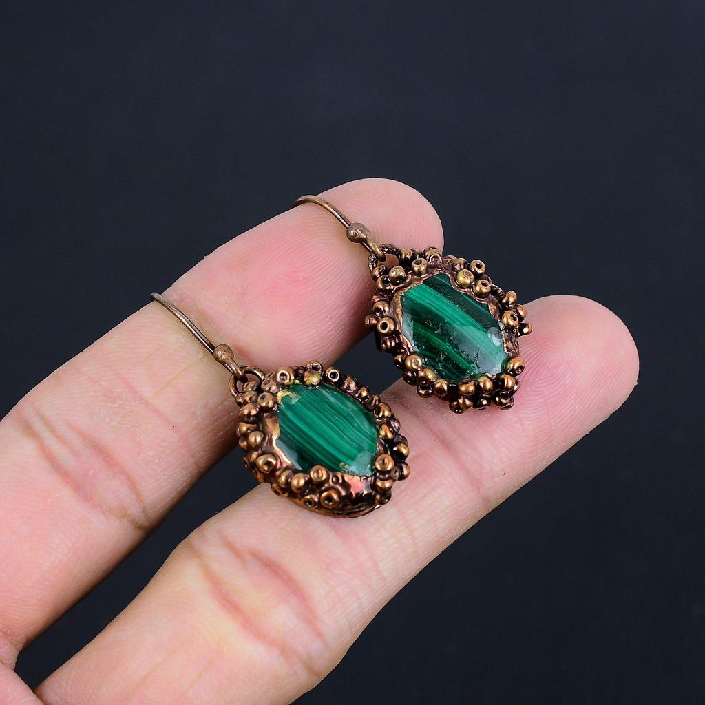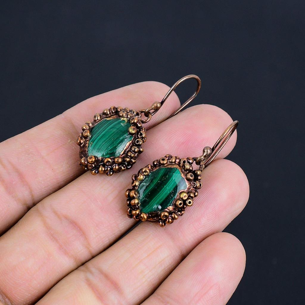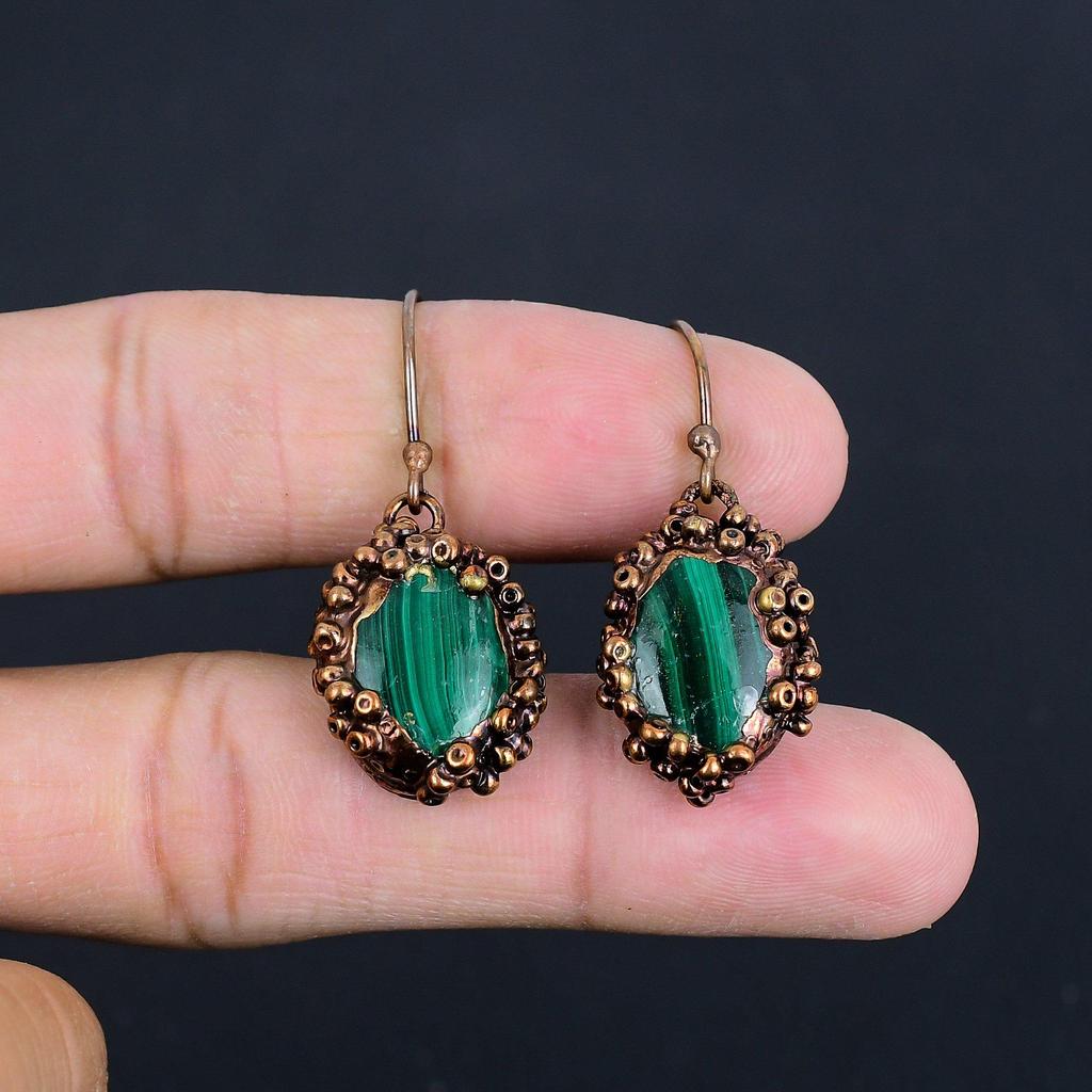 Серьги из малахита, Медные электроформованные украшения, Подарок для женщин, Серьги ручной работы, Украшения из драгоценных камней
