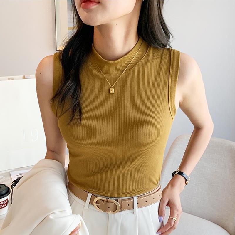 Женская летняя тонкая майка-слинг с круглым вырезом, с резьбой по низу, облегающий топ без рукавов