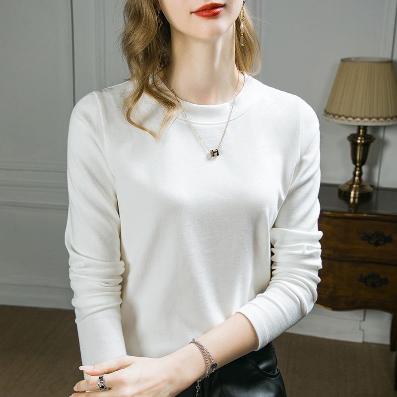 Белый топ из модального хлопка с круглым вырезом, летний новый, с длинным рукавом, с имитацией кашемира внутри