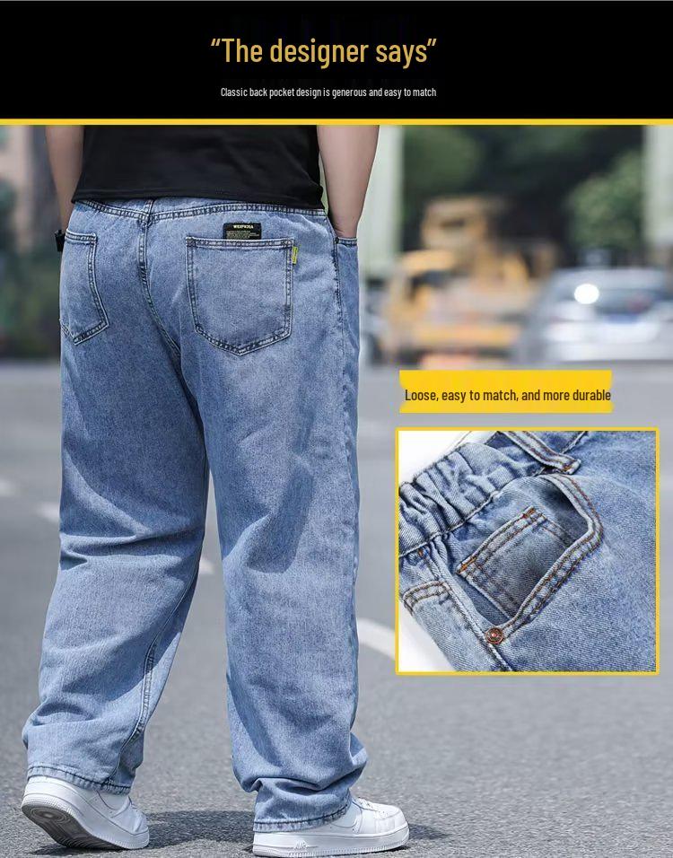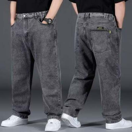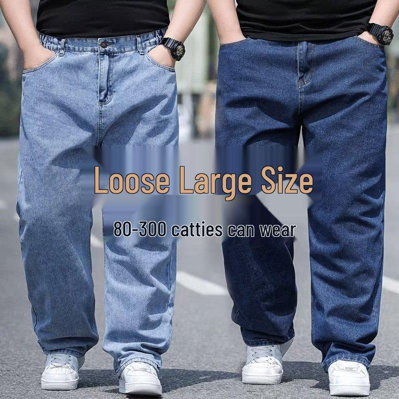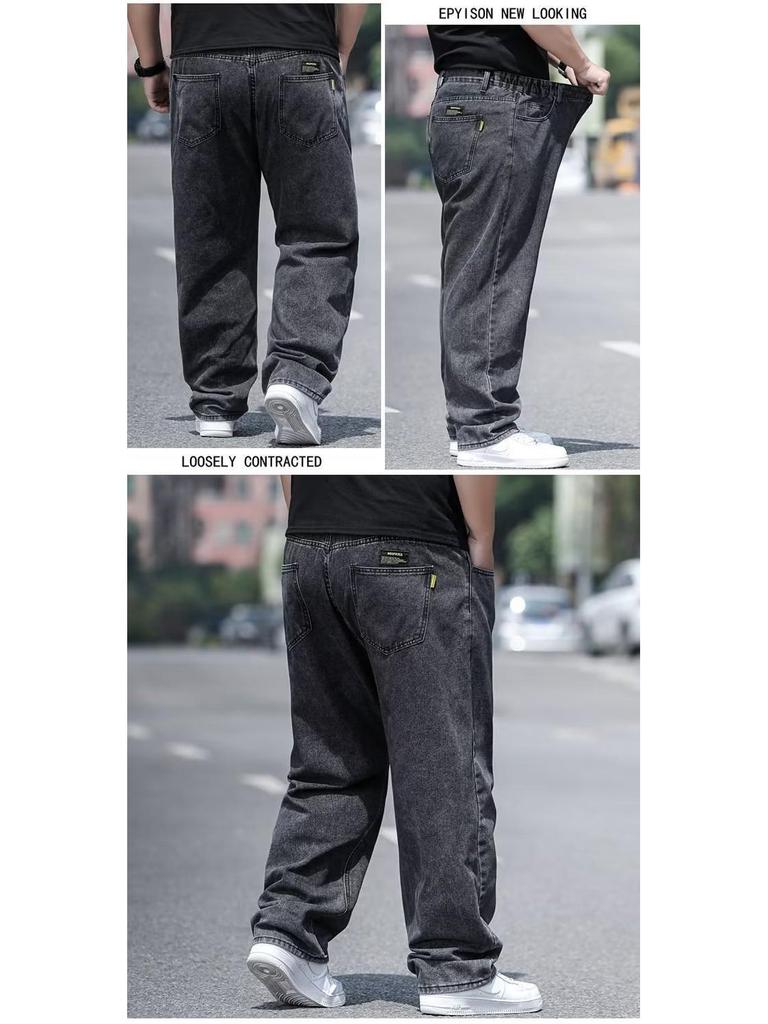 Мужские джинсы больших размеров свободного кроя - Осенние широкие штанины, эластичная талия, прямой крой