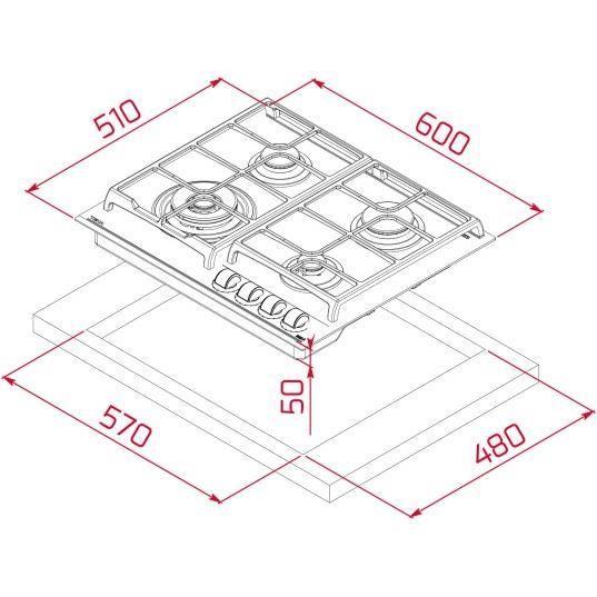Газовая варочная панель TEKA - 4 конфорки - Стеклокерамическая поверхность - Встроенный самоподжиг