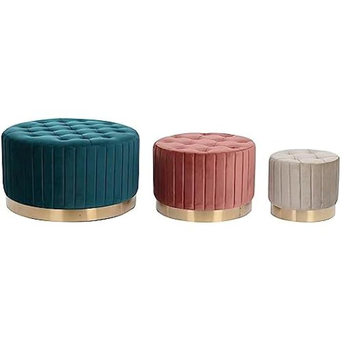 Repose-Pieds - DKD Home Decor - Standard - Métal - Velours - 80x80x45 cm