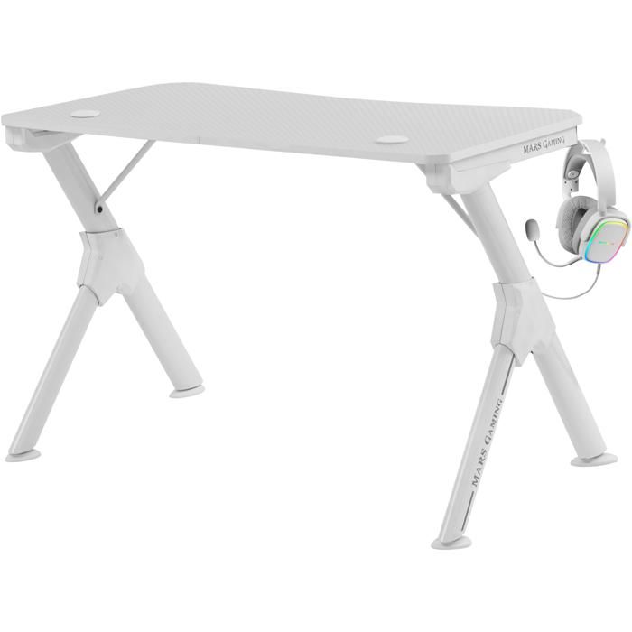 Mars Gaming MGD - Bureau Gamer Blanc - Support Casque + Bouteille - 110x60cm