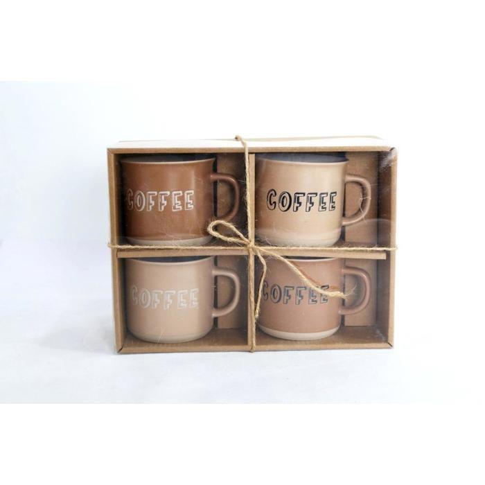 Mug - ITEM - Set de 4 - Grès - Cylindrique - 28,5 cl - Marron