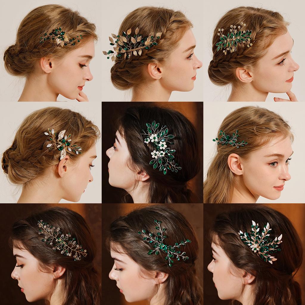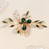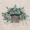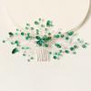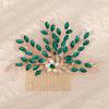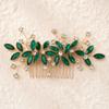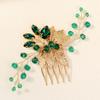 Ретро Сплав Стразы Заглушка Гребень Ручной Работы Лист Зеленый Кристалл Головной Убор Антикварные Украшения Ханфу Свадебный Гребень для Волос