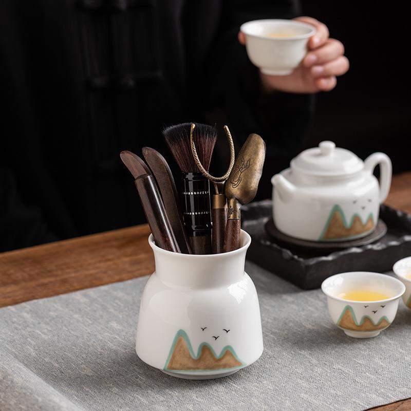 Suet jade porcelain tea ceremony six gentlemen accessories tea needle teaspoon tea clip pen holder pot pen tea brush