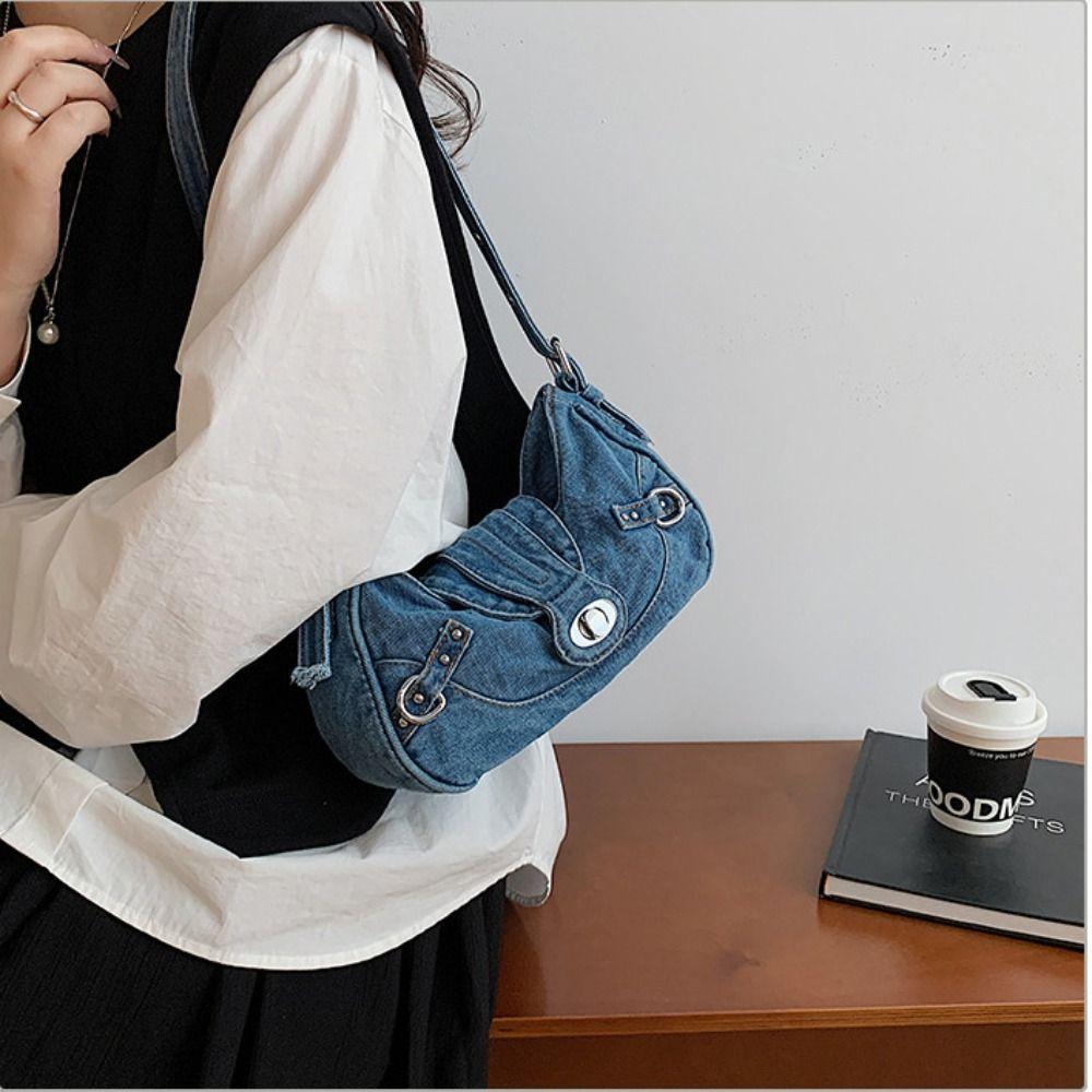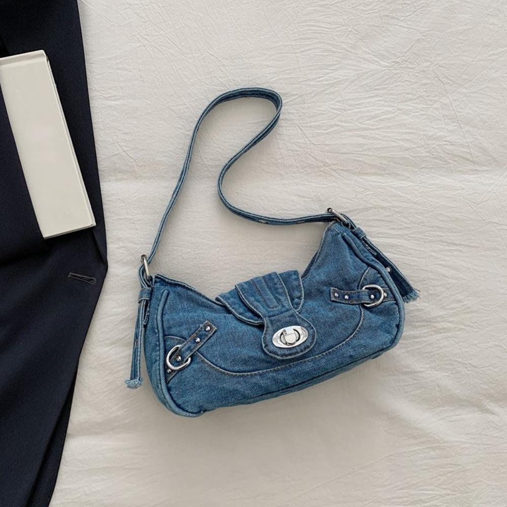 Underarm Bag Retro Denim Shoulder Bag Y2K Cloth Armpit Bag Trend Denim Handbag Shopping