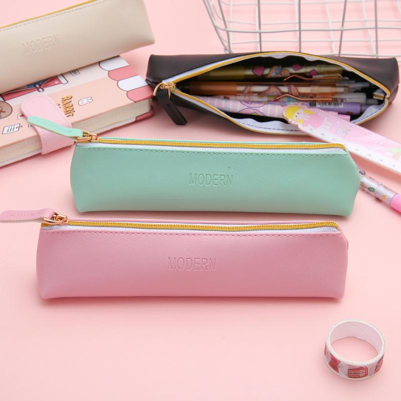 Новый чехол-органайзер из ПУ кожи на молнии для ручек и карандашей, простой винтажный цвет, сумка для хранения ручек, канцелярских принадлежностей, школьный мини-пенал