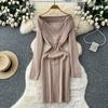 Осень Зима Женский Повседневный Вязаный Свитер с V-образным вырезом и длинным рукавом в полоску, Облегающее Платье-футляр