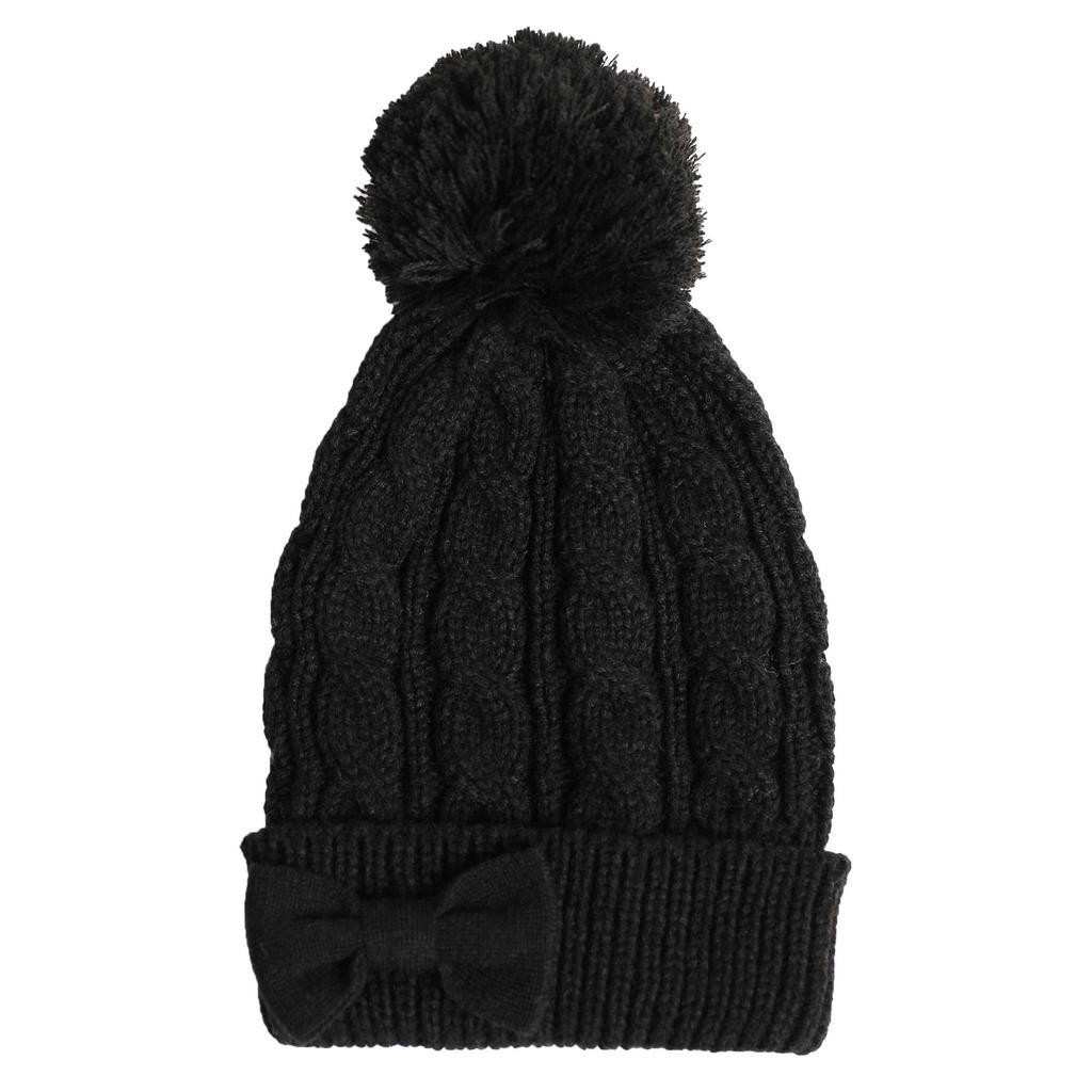 Детская шапка Arisana крупной вязки для девочек с лентами для тепла Один (JP, Алфавит, Размер, Черный)