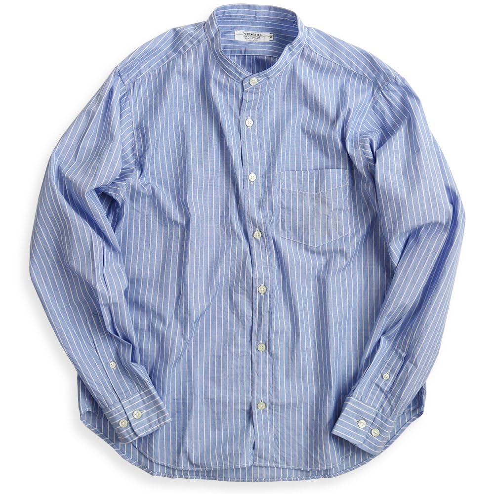 Рубашка мужская Quintet VINTAGE EL с полосками, воротником-стойкой и длинным рукавом, сделано в Японии, размер L, темно-синяя, 11-70192 (Размер 3-2)