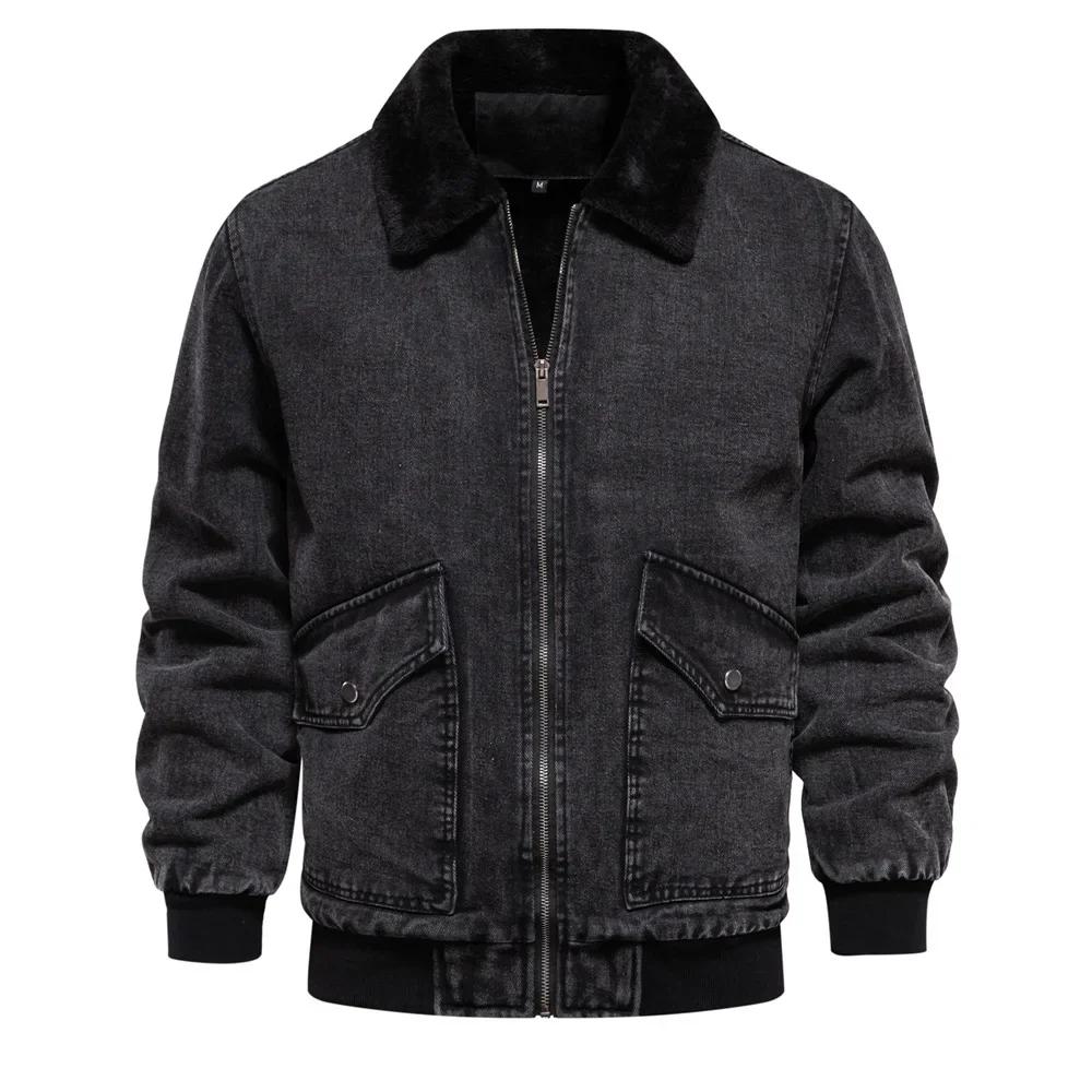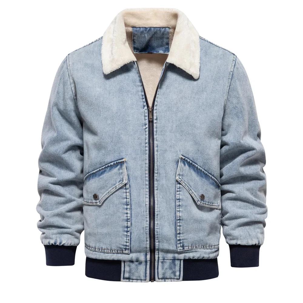 Европейская и американская трендовая молодежная новая однотонная выстиранная джинсовая куртка на флисовой подкладке с лацканами для осени и зимы S-XXL