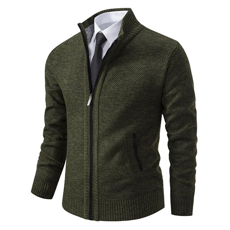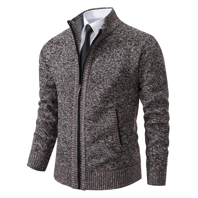 Осенне-зимний мужской спортивный свитер из джерси, однотонный, с воротником-стойкой, теплый флисовый кардиган на молнии