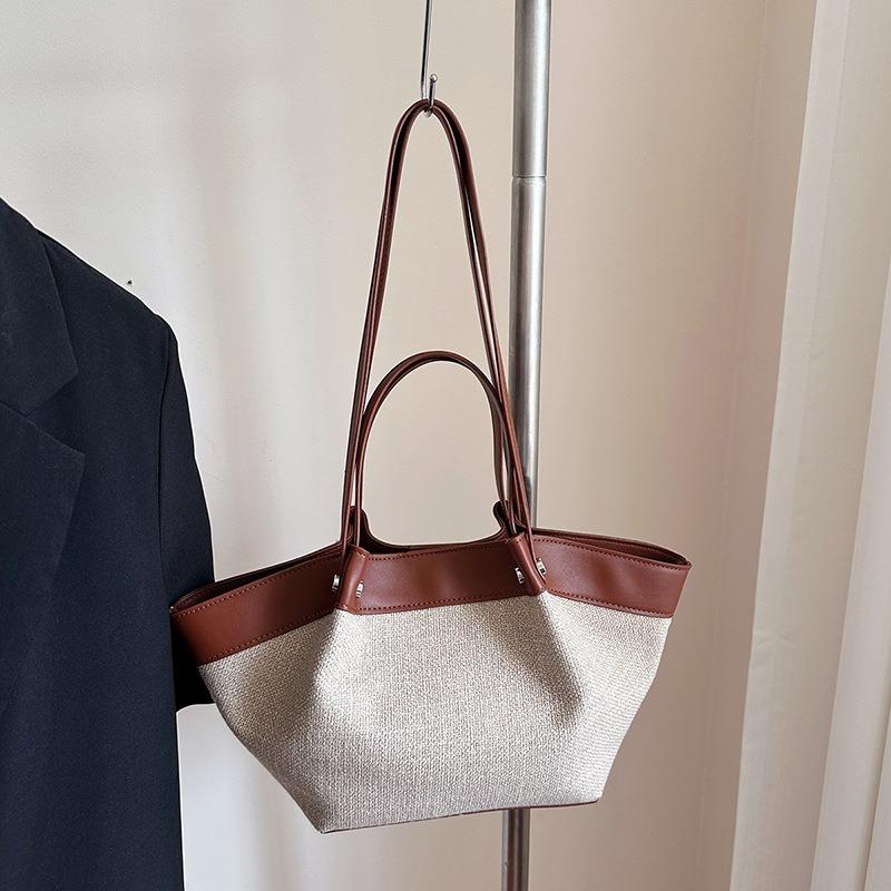 Весенняя новая ретро портативная наплечная сумка нишевого дизайна холщовая с вставками большая вместительная сумка-тоут