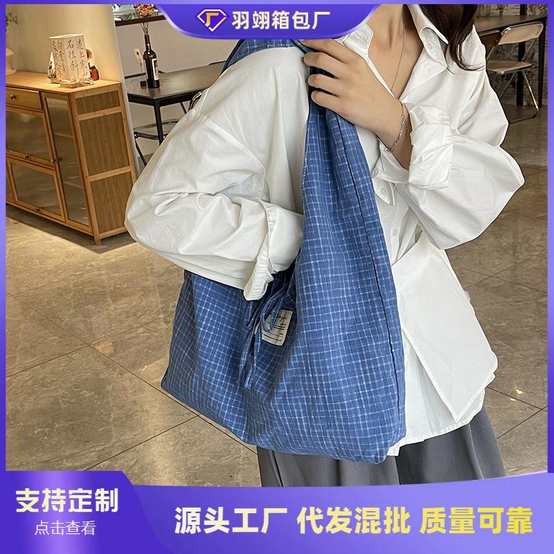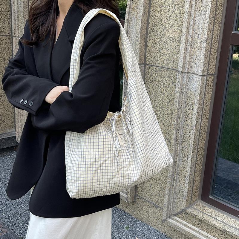 Клетчатая тканевая сумка женская большой вместимости новая летняя ленивая сумка через плечо повседневная классная сумка-тоут