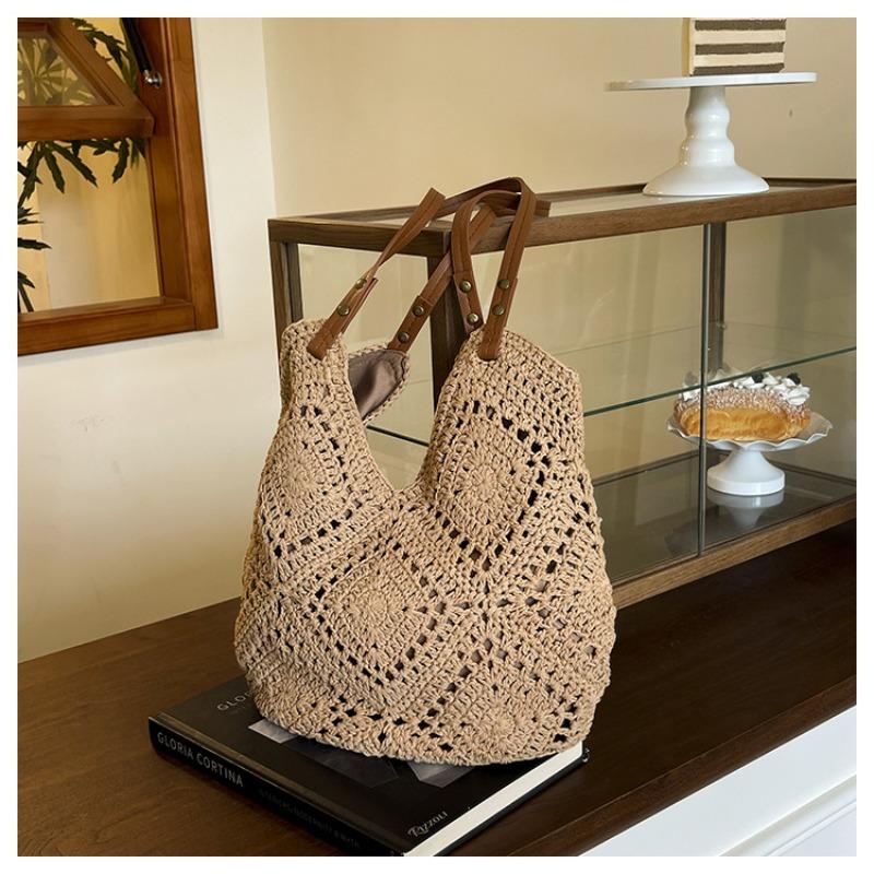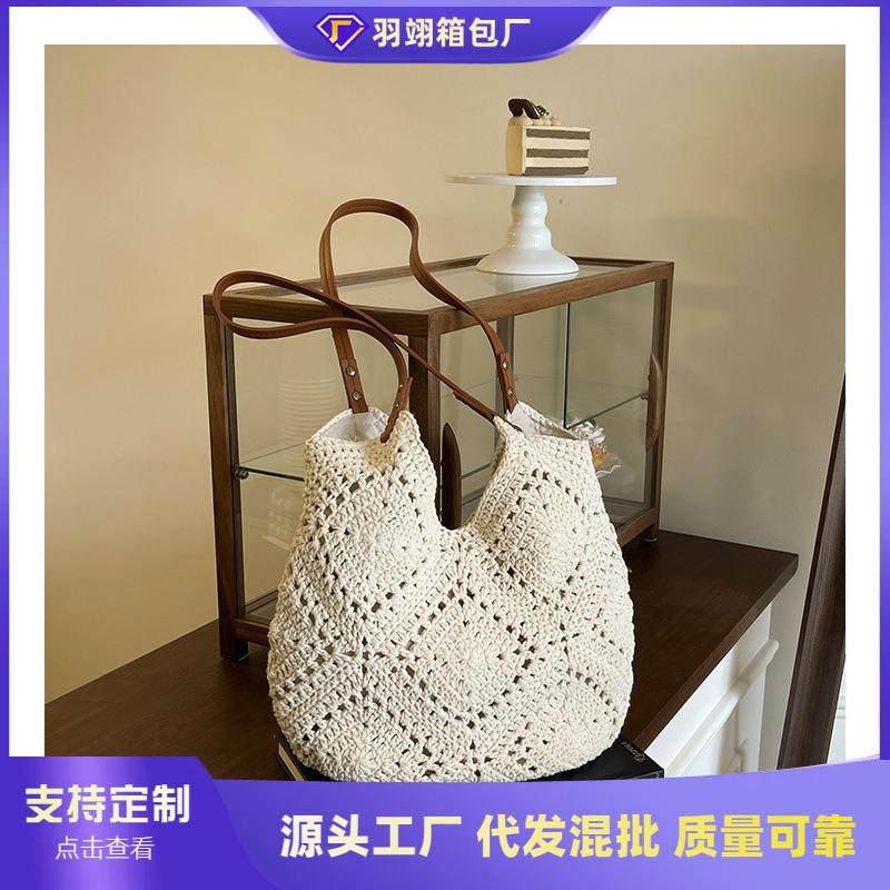Вязаная сумка большой вместимости женская летняя новая универсальная на плечо вязаная сумка повседневная сумка-тоут для поездок на работу