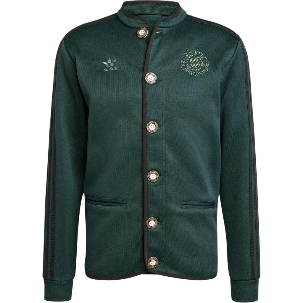 Adidas Originals FC Bayern X Originals Логотип Вышитый Дизайн Однобортный Модный Круглый Вырез Длинный Рукав Куртка Мужские Куртки Зеленый IZ0088