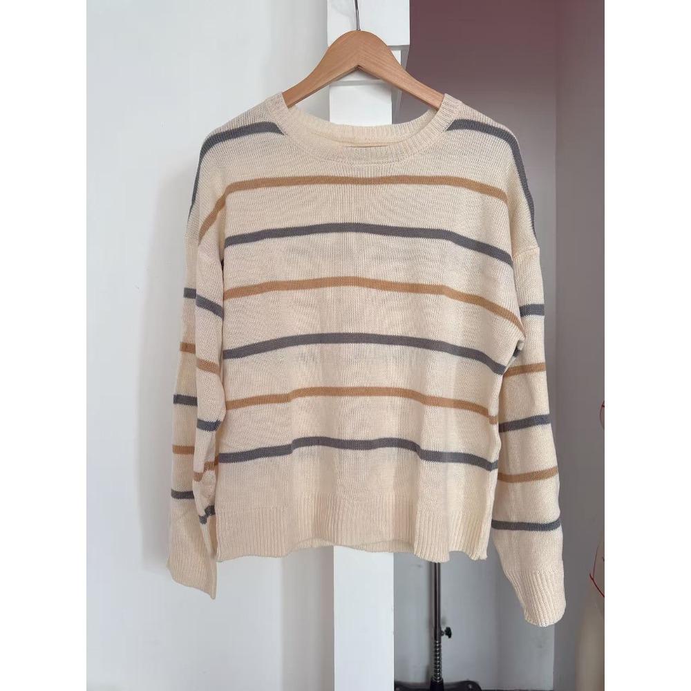 Повседневные цветные полосатые пуловеры с длинным рукавом свободного кроя для женщин