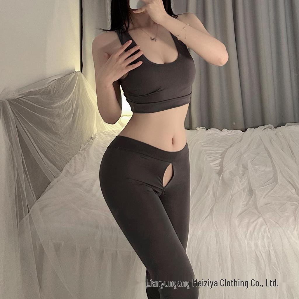 Сексуальные брюки для йоги из ледяного шелка с открытой промежностью и невидимой молнией