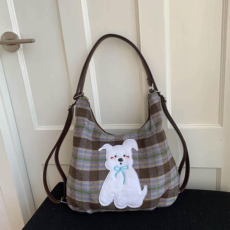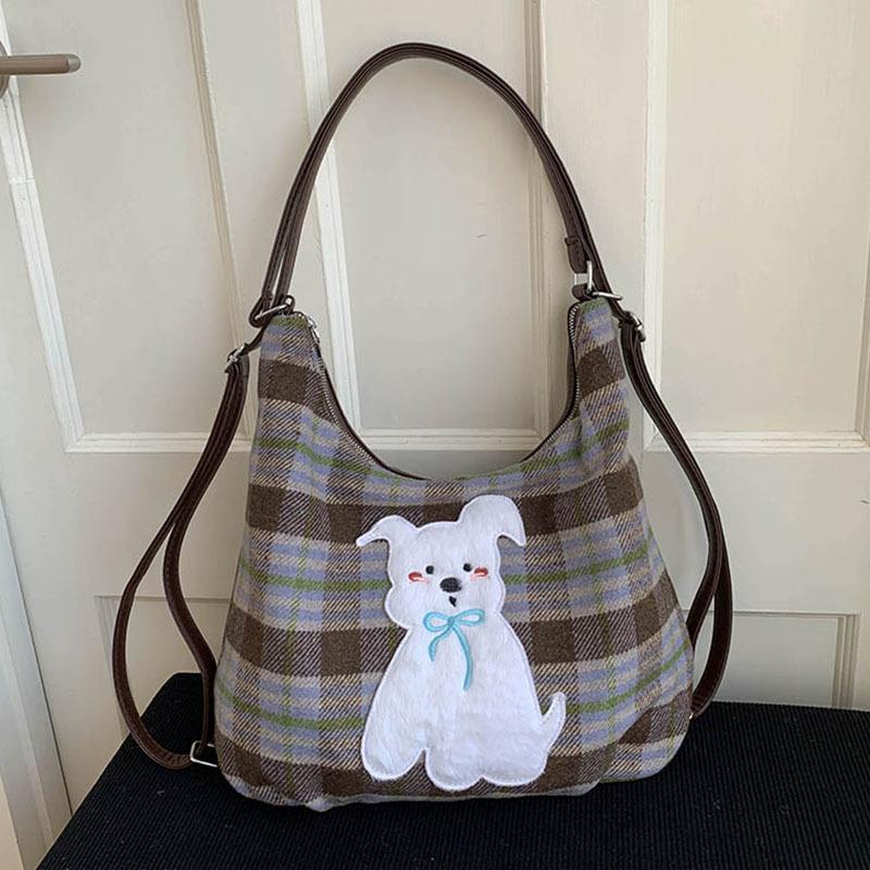 Клетчатая шерстяная сумка-тоут женская большой вместимости на плечо/мессенджер осенне-зимняя многофункциональная сумка-рюкзак