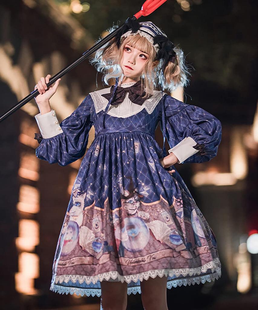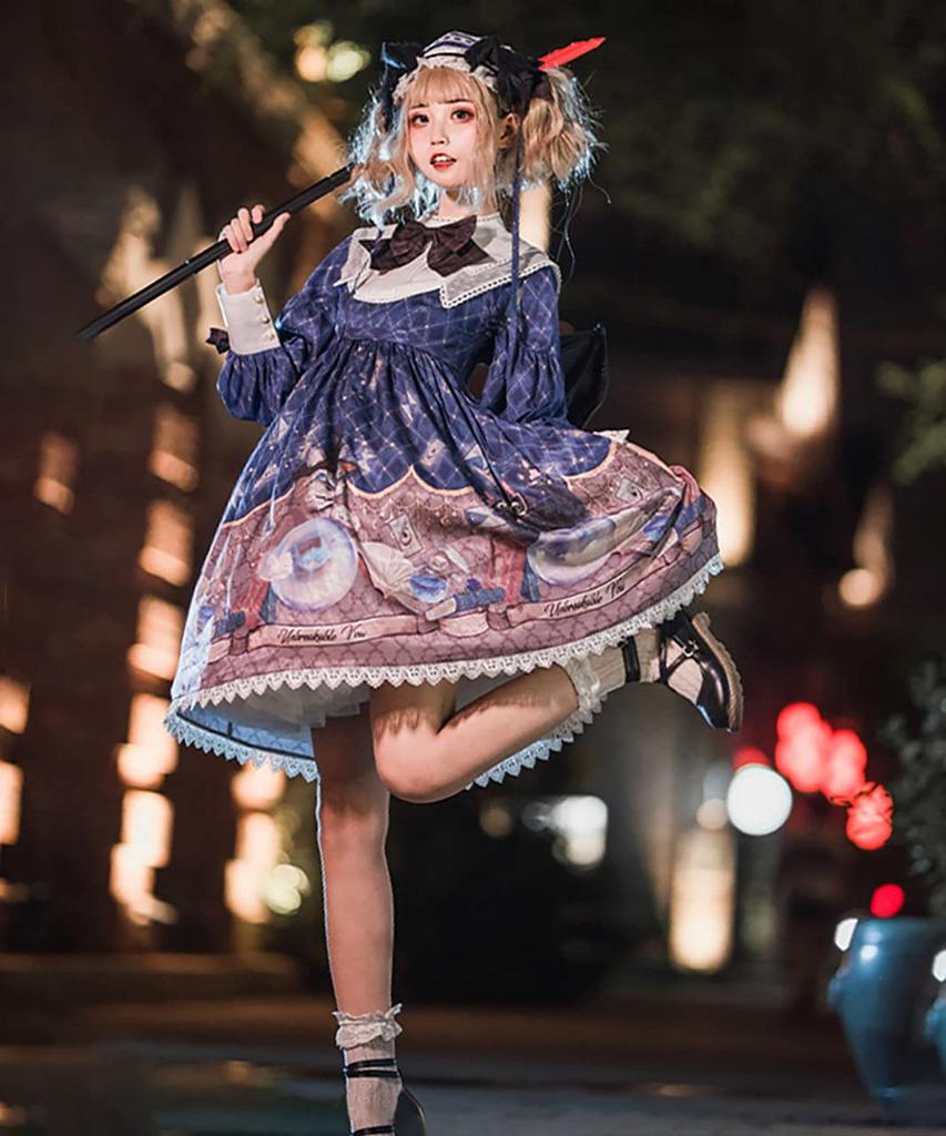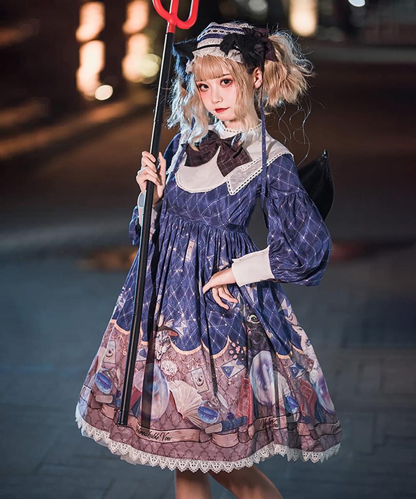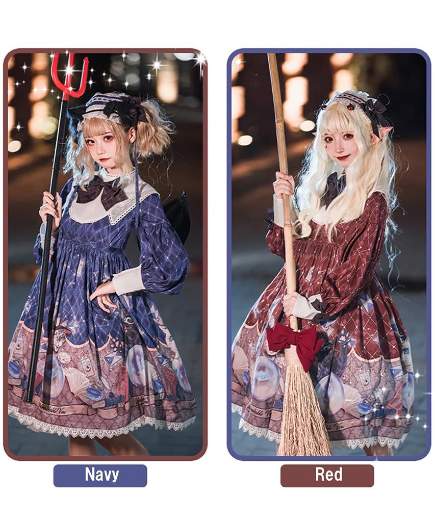 [Milky Time] Платье Лолита Классическая Лолита с рукавами-фонариками, длинными рукавами, магическим кристаллом и дизайном кошки (военно-морской флот)