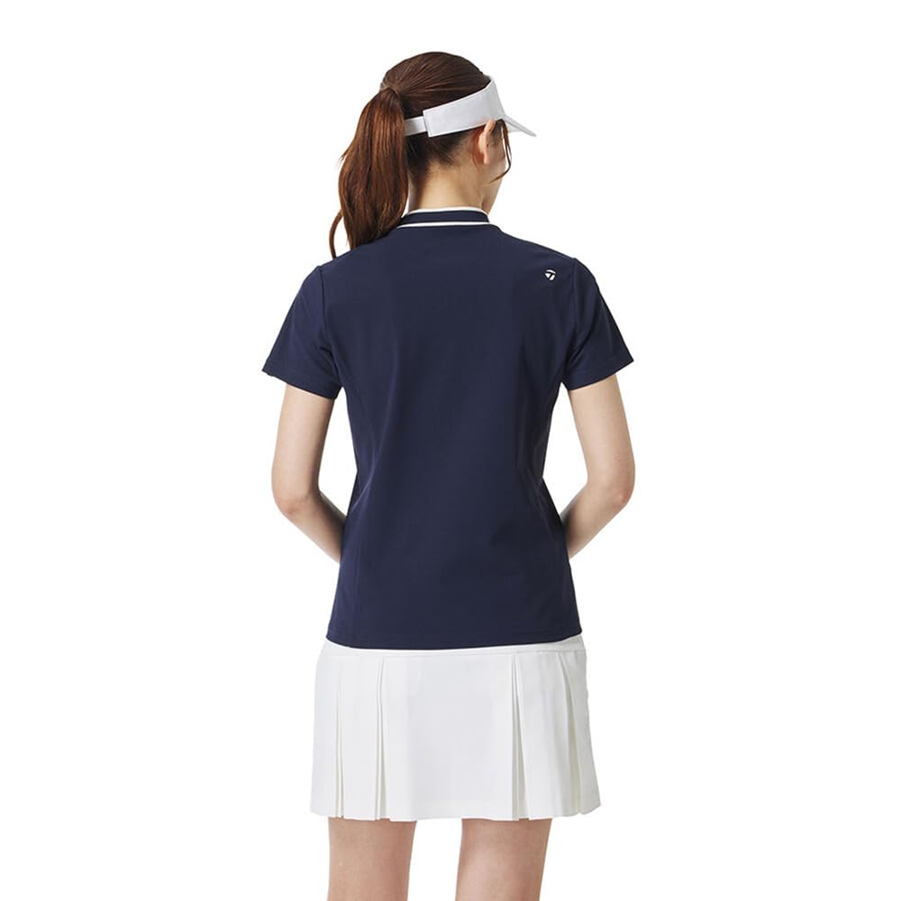 TaylorMade Women's Script Logo S/S Mock Shirt, Navy, Size L, 2025FW, TL521
